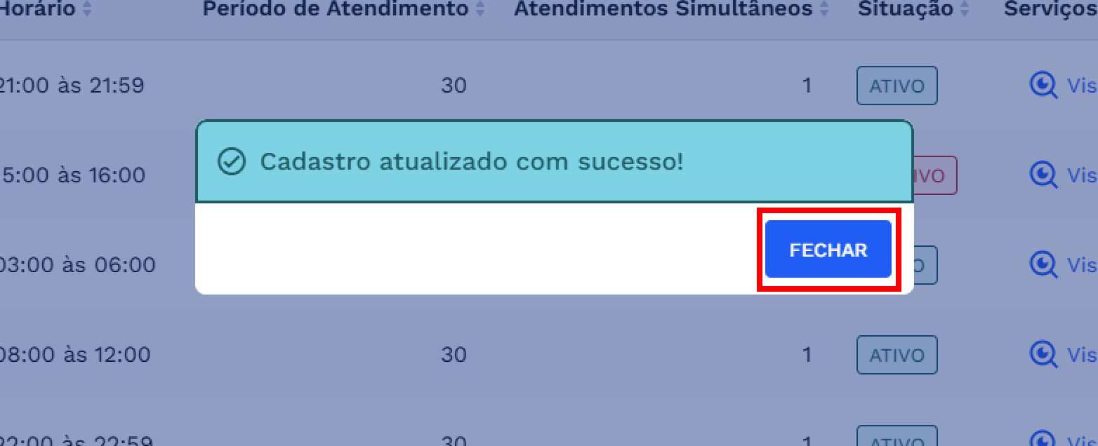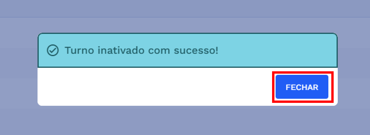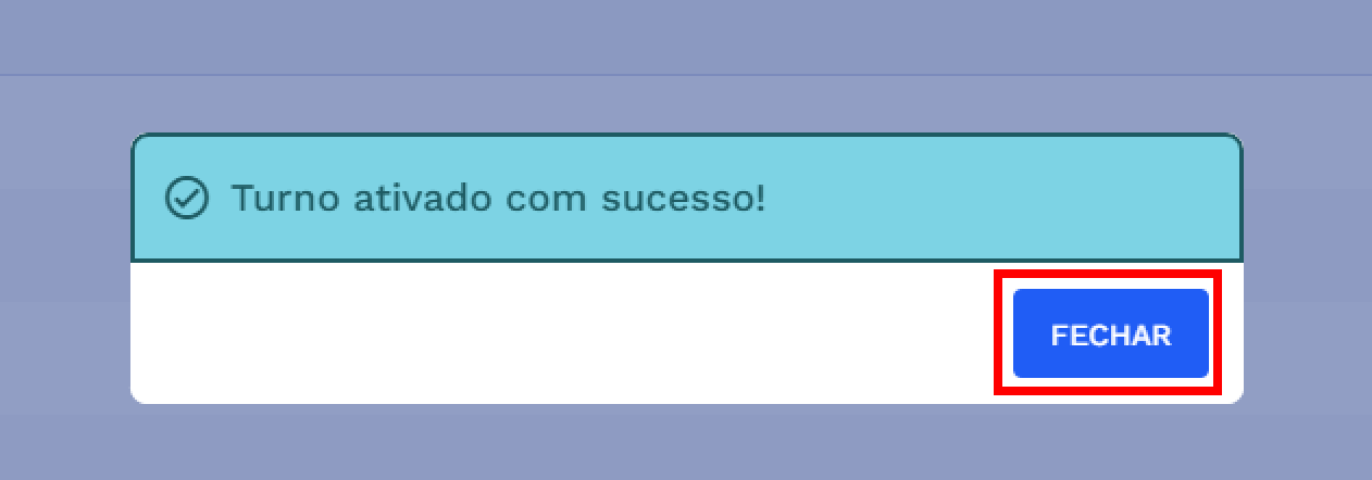 O botão “Fechar” estará disponível para encerrar o diálogo e retornar à lista de turnos.