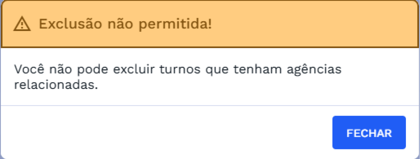 Caso o sistema identifique que o turno selecionado possui agências relacionadas, será exibida a seguinte caixa de diálogo: